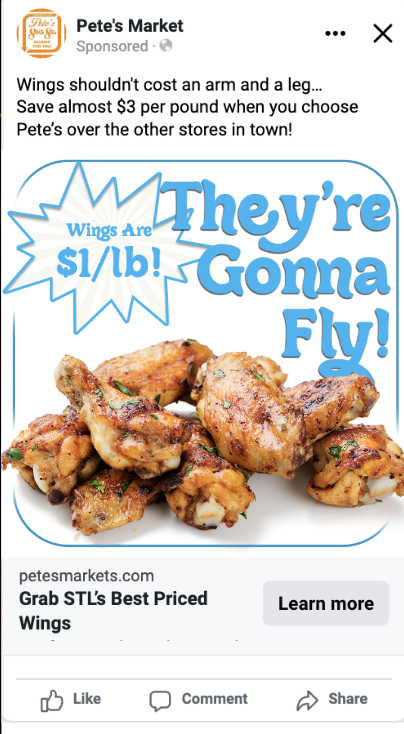 Pete’s MarketThis local grocer carries unique & reasonably priced products and wanted the surrounding community to think of them rather than the big names. They were open to trying a variety of approaches and I chose a retro style to pair.